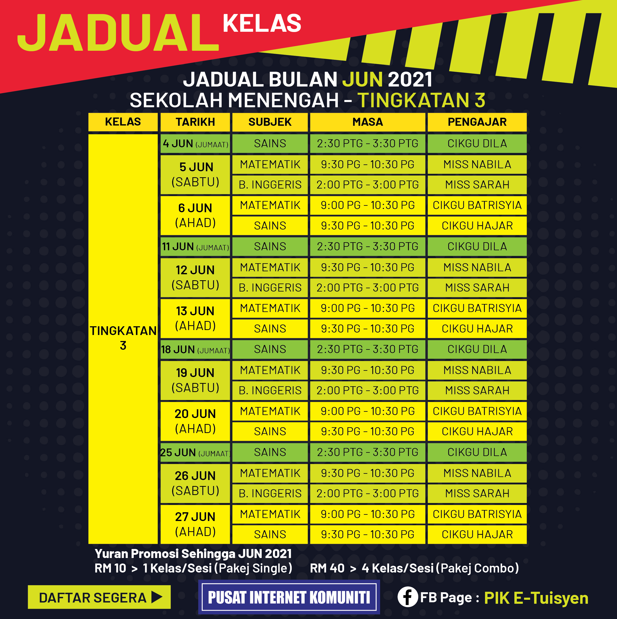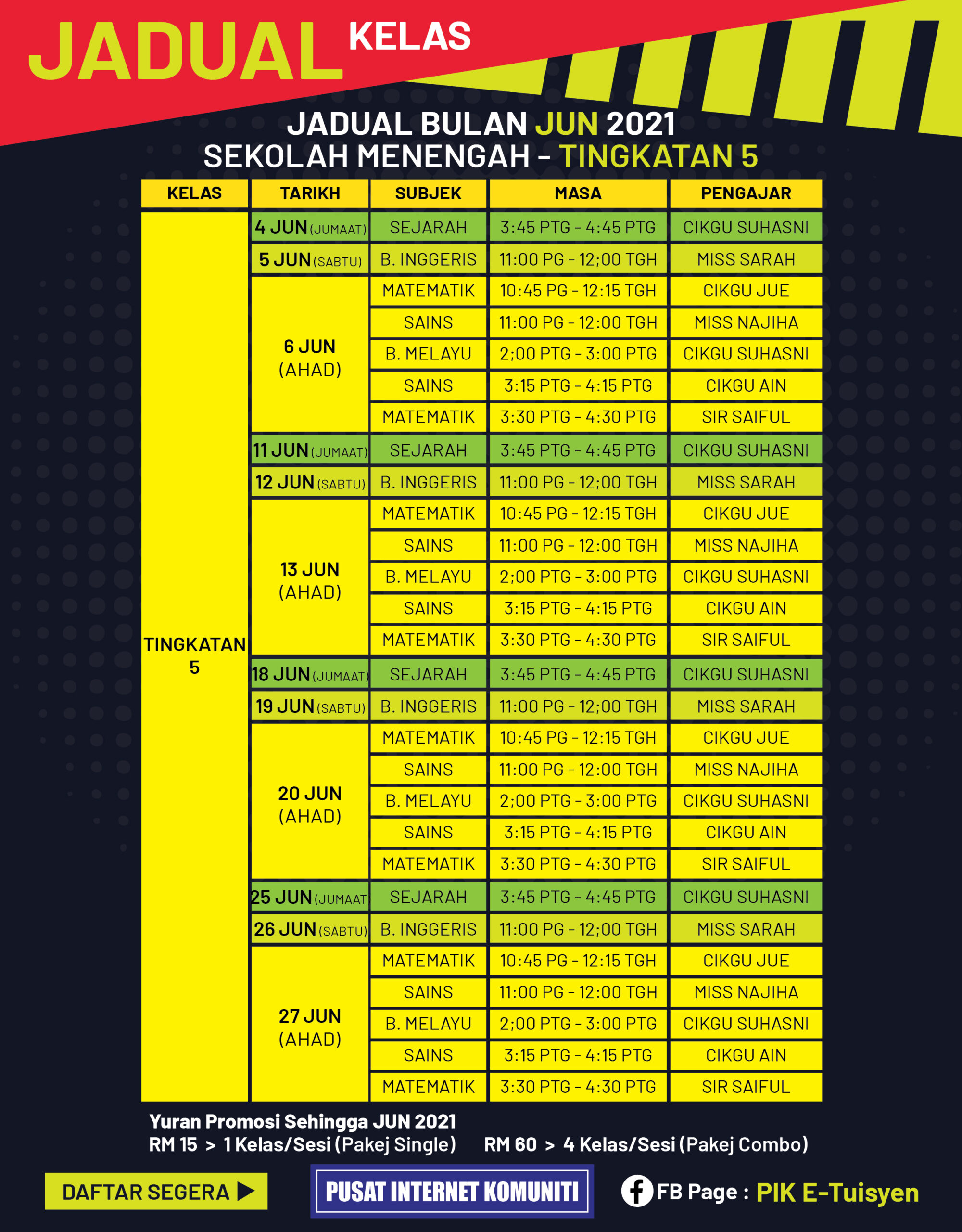 Jadual E-Tuisyen Online PIK Jun 2021