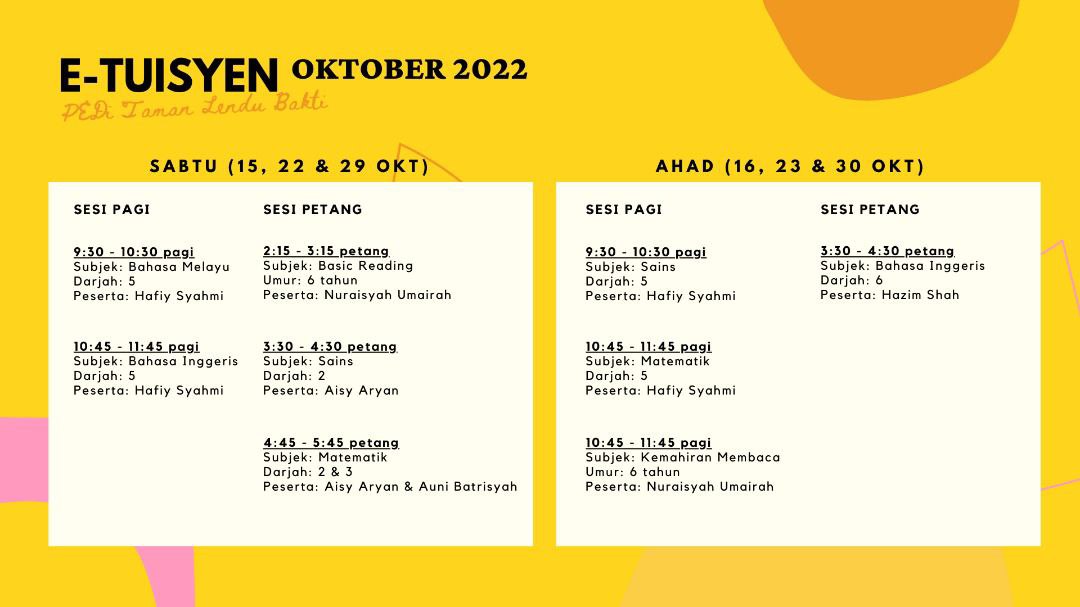 Jadual Kelas E-Tuisyen bagi Bulan Oktober