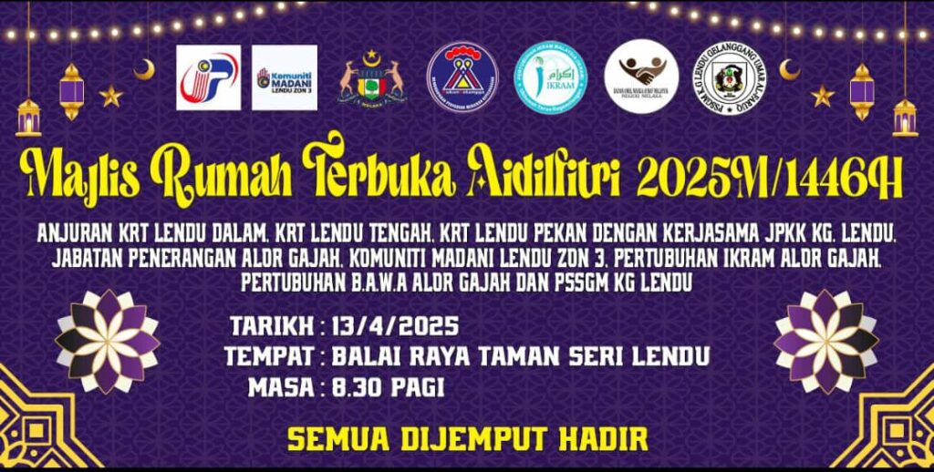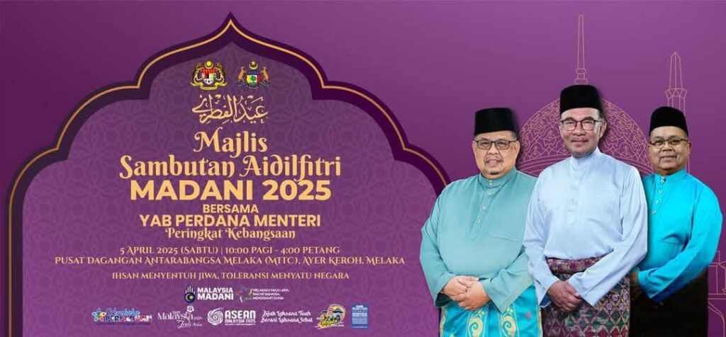 Seluruh rakyat Malaysia, khususnya warga Melaka, dijemput hadir bersama-sama dan memeriahkan Majlis Sambutan Aidilfitri MADANI 2025 Peringkat Kebangsaan. Kenakan busana raya terbaik anda dan raikan Syawal dalam suasana penuh kemesraan, keharmonian, dan perpaduan!